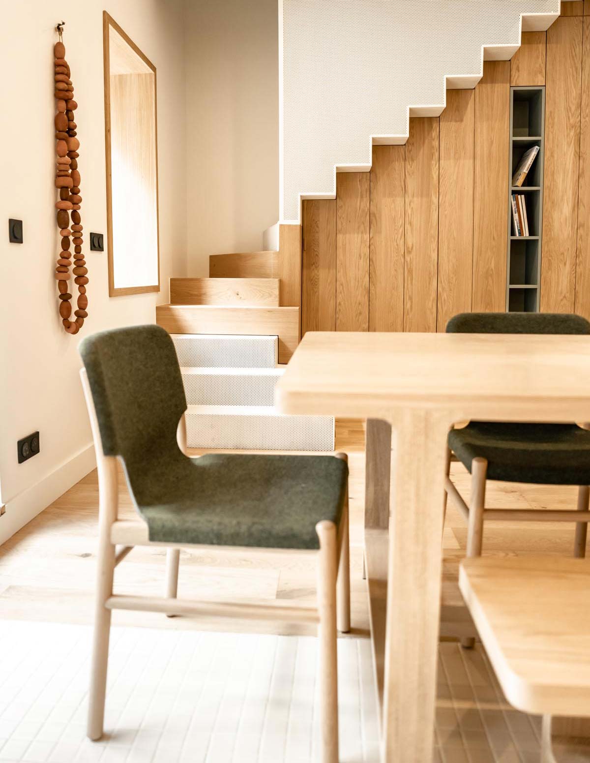 Nestled in the Marina district of Hondarribi, in the Southern Basque Country, this former fishermen's house has been given a new lease of life thanks to the subtle work of the AtelierEB Architecture studio. A play of transparency has bathed every corner of this once-dark home in light.At the heart of the main room, our Xume chairs and Emea table naturally find their place. They create a harmonious dialogue between the warmth of solid oak and the subtle color of the recycled PET shells of the Xume chairs.Interior Architect: AtelierEB ArchitecturePhotos: Jeremy Couffitte