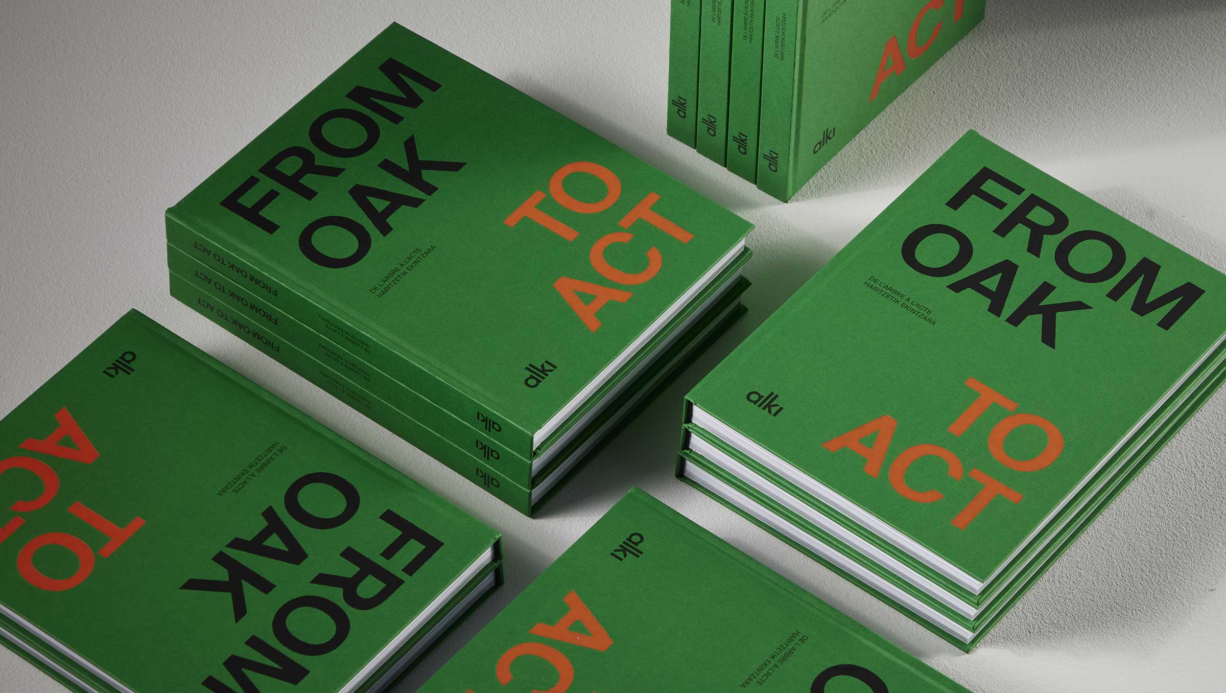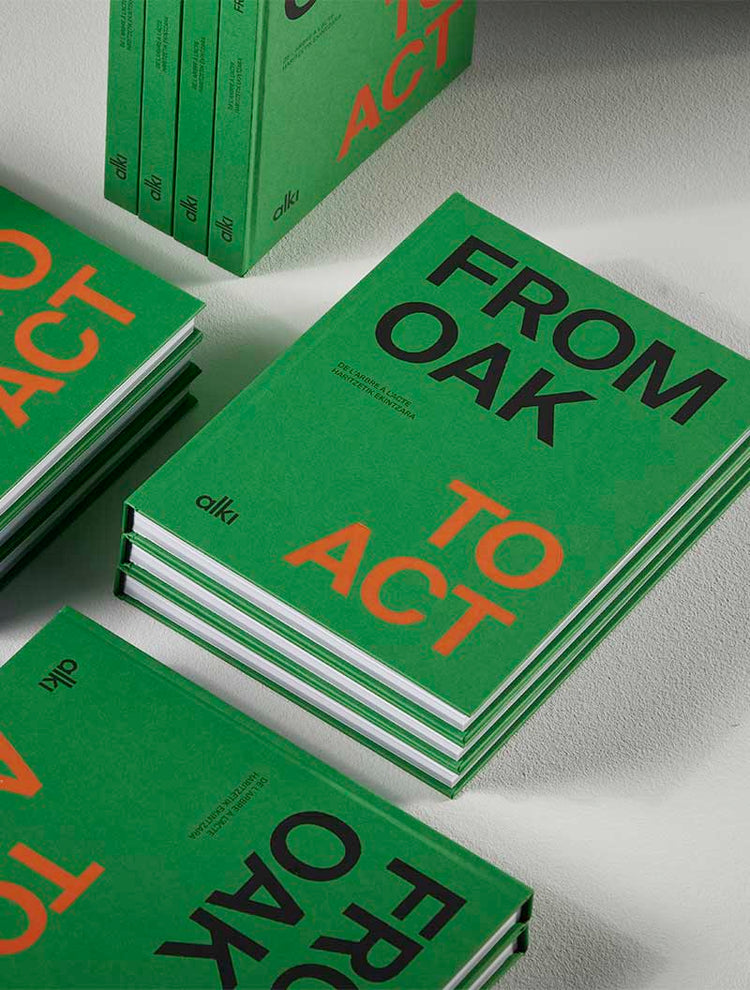 For nearly 45 years, Alki has been crafting furniture. But behind each chair, each table, lies a deeper commitment: the desire to live and work in the region, and the will to help build a more desirable future.This collective vision is what we set out to capture in words and images in "From Oak to Act". A trilingual manifesto book (English, French, Basque) that retraces the story of Alki: from the founding of our cooperative in 1981 in the northern Basque Country to our most recent creations. It highlights the craftsmanship around solid oak, but also our explorations of bioplastic, textiles, and more.