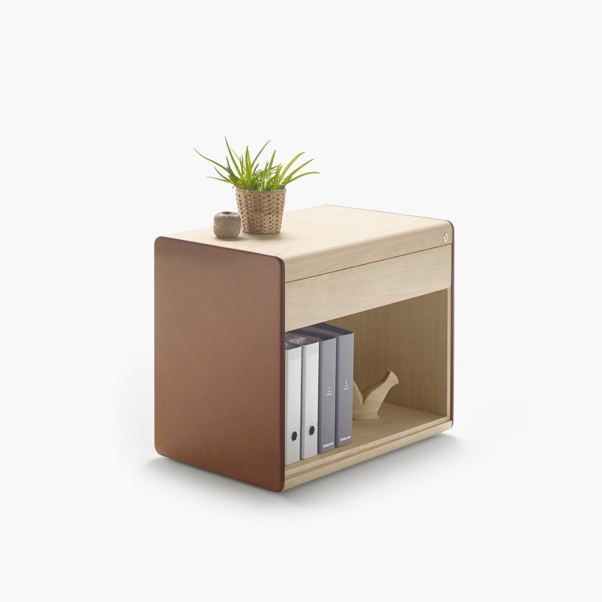 Among other possibilities, the Heldu desk collection offers several storage devices made of oak: mobile containers available with drawers and folders storage, as well as a furniture system whose ingenious design allows it to integrate with Heldu office desk.