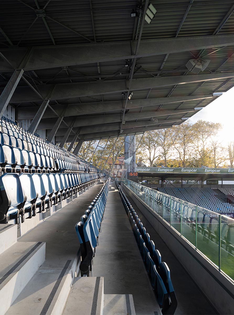 Duela gutxi, tamaina handiko lan batzuei esker, atletismoko pista kendu ahal izan da, tribunak terrenotik hurbilduz eta estadioaren gaitasuna handituz. Patrick Arotcharen arkitektura-agentziak diseinatutako ekialdeko tribuna berriak kafeteria eta lounge espazioak gure Heldu, Lur, Egon eta Lasai bildumekin hornituak ditu.