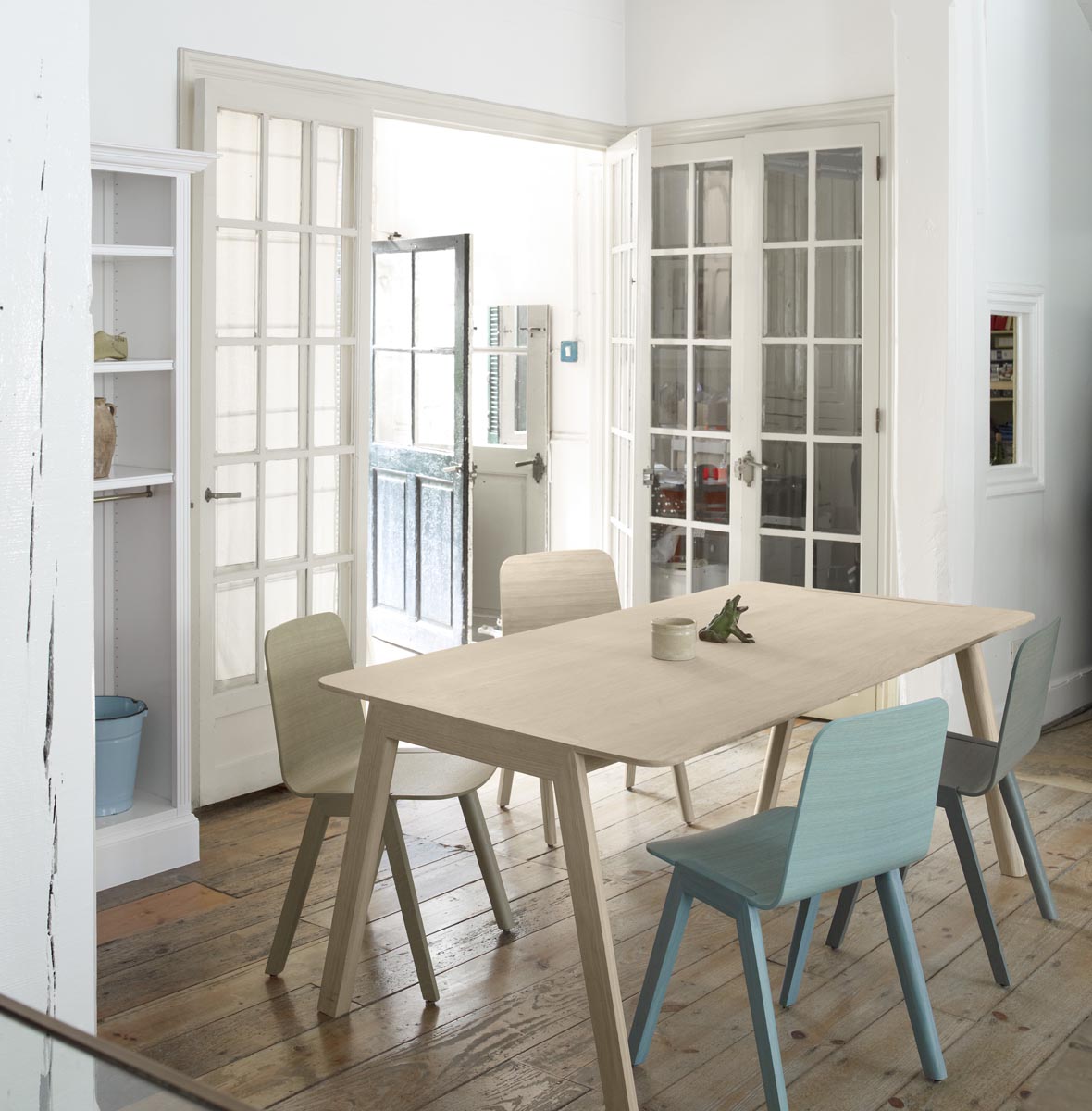 Zahartutako zola, tonu argiak, Donostiako alde zaharreko Montes Múgica etxeak Heldu bildumako hainbat piezari ongi etorria egiten die dotorezia eta sinpletasunez. Aulkiak, tabureteak eta haritz sendozko mahaiak modu naturalean eta diskretuan txertatzen dira barnealde argitsu honetan. Emaitza: lasaitasun giro bat, kafe batekin solasaldi bat izateko, irakurketa momentu baterako edo afari inprobisatu baterako...